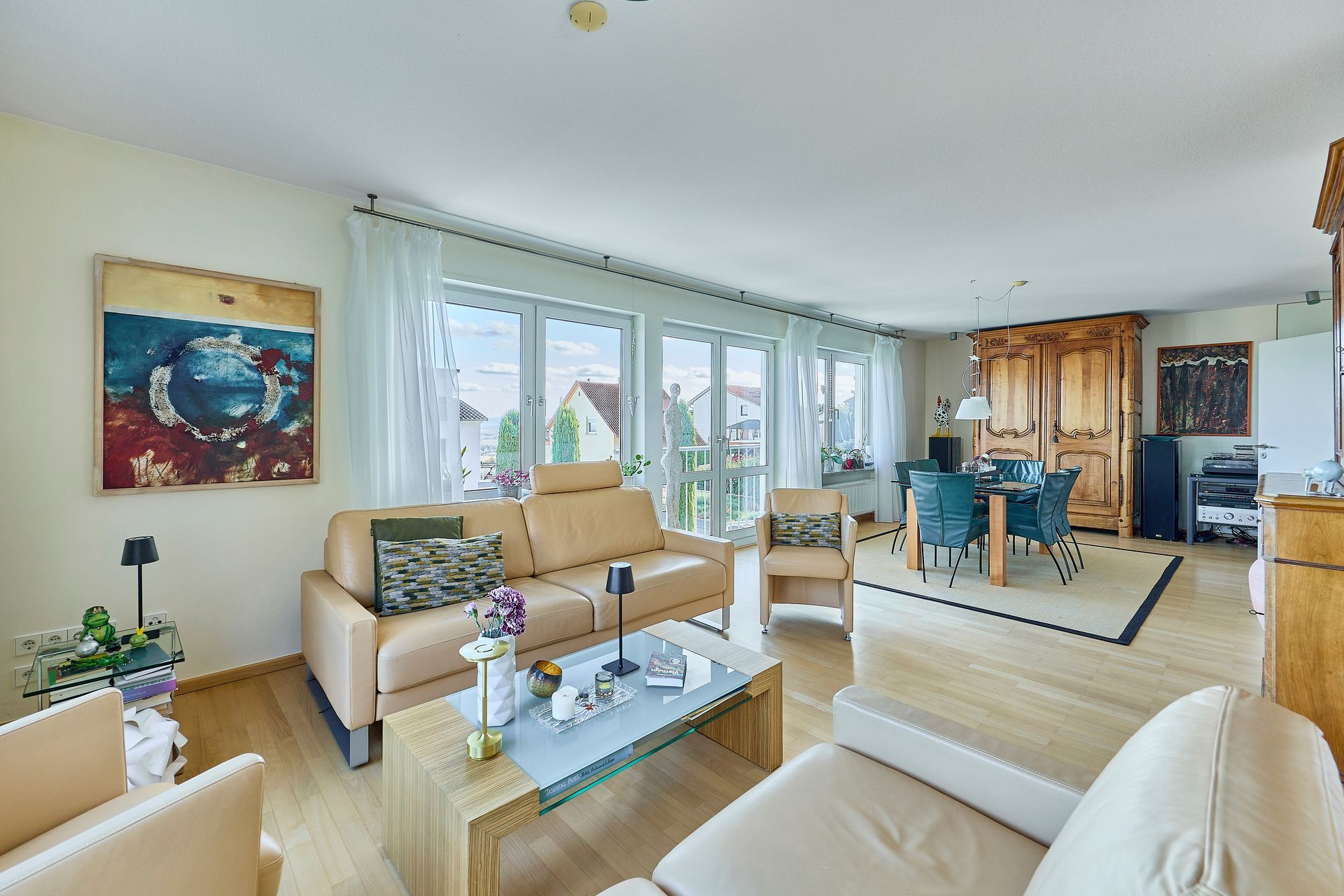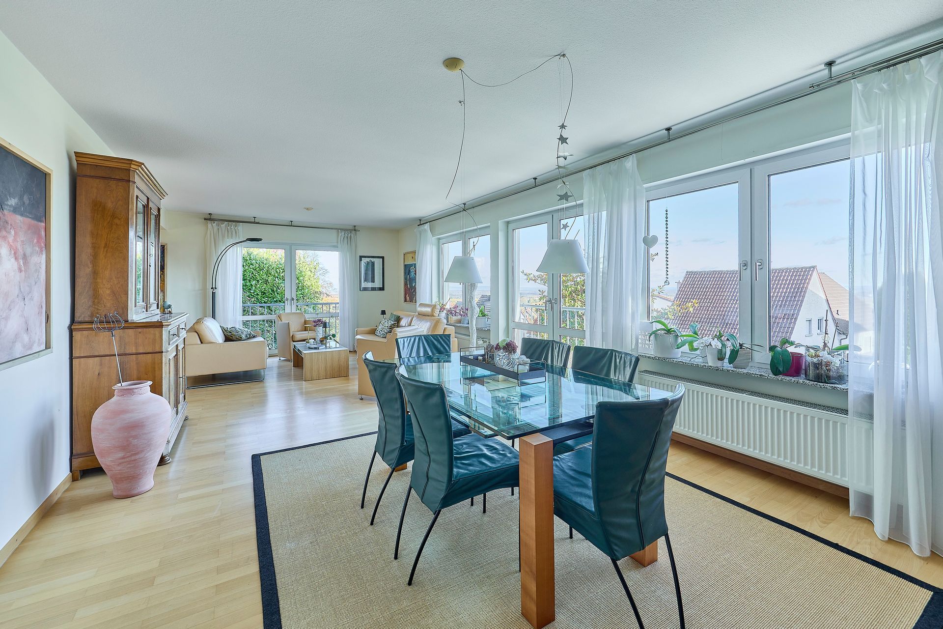 * großzügiger, lichtdurchfluteter Wohnbereich mit Panoramafenstern