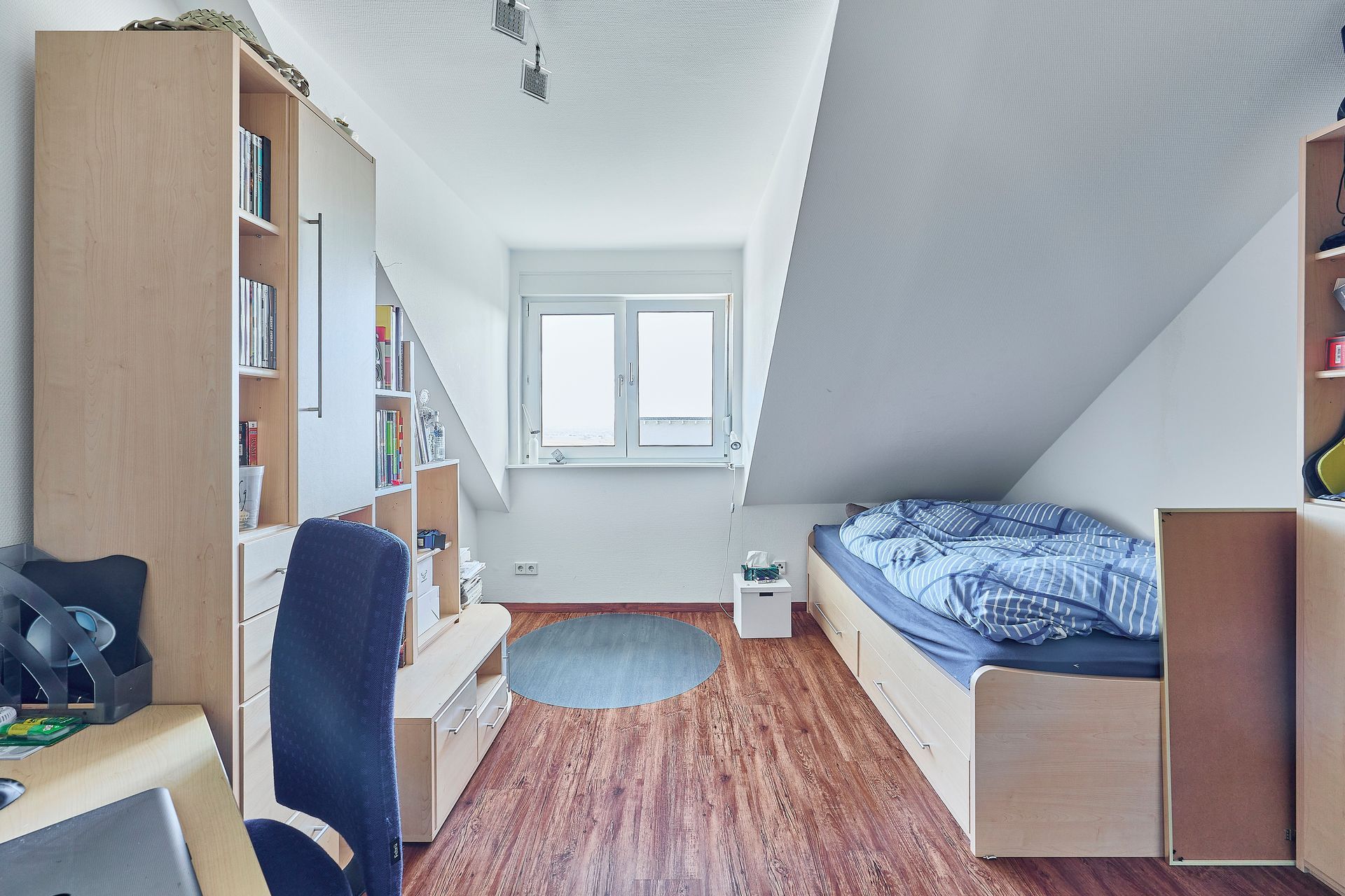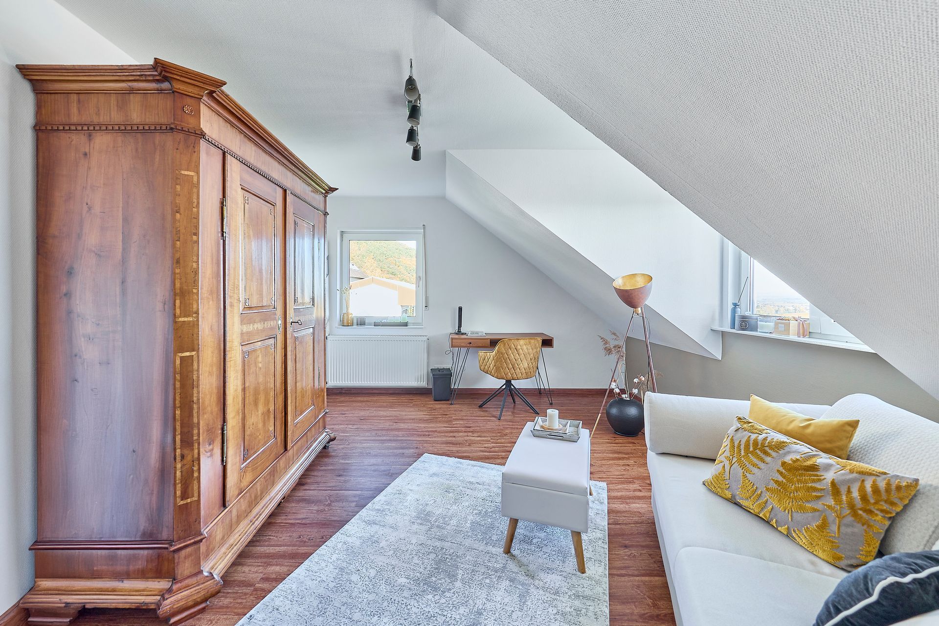Im Obergeschoss erwarten Sie vier vielseitig nutzbare Räume sowie ein Tageslichtbad. Diese eröffnen zahlreiche Gestaltungsmöglichkeiten und eignen sich ideal als Schlaf-, Kinder- oder Arbeitszimmer.